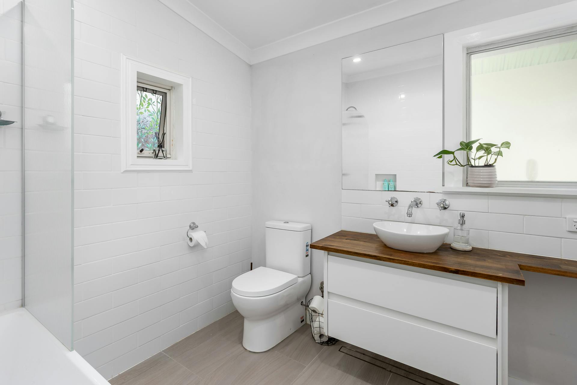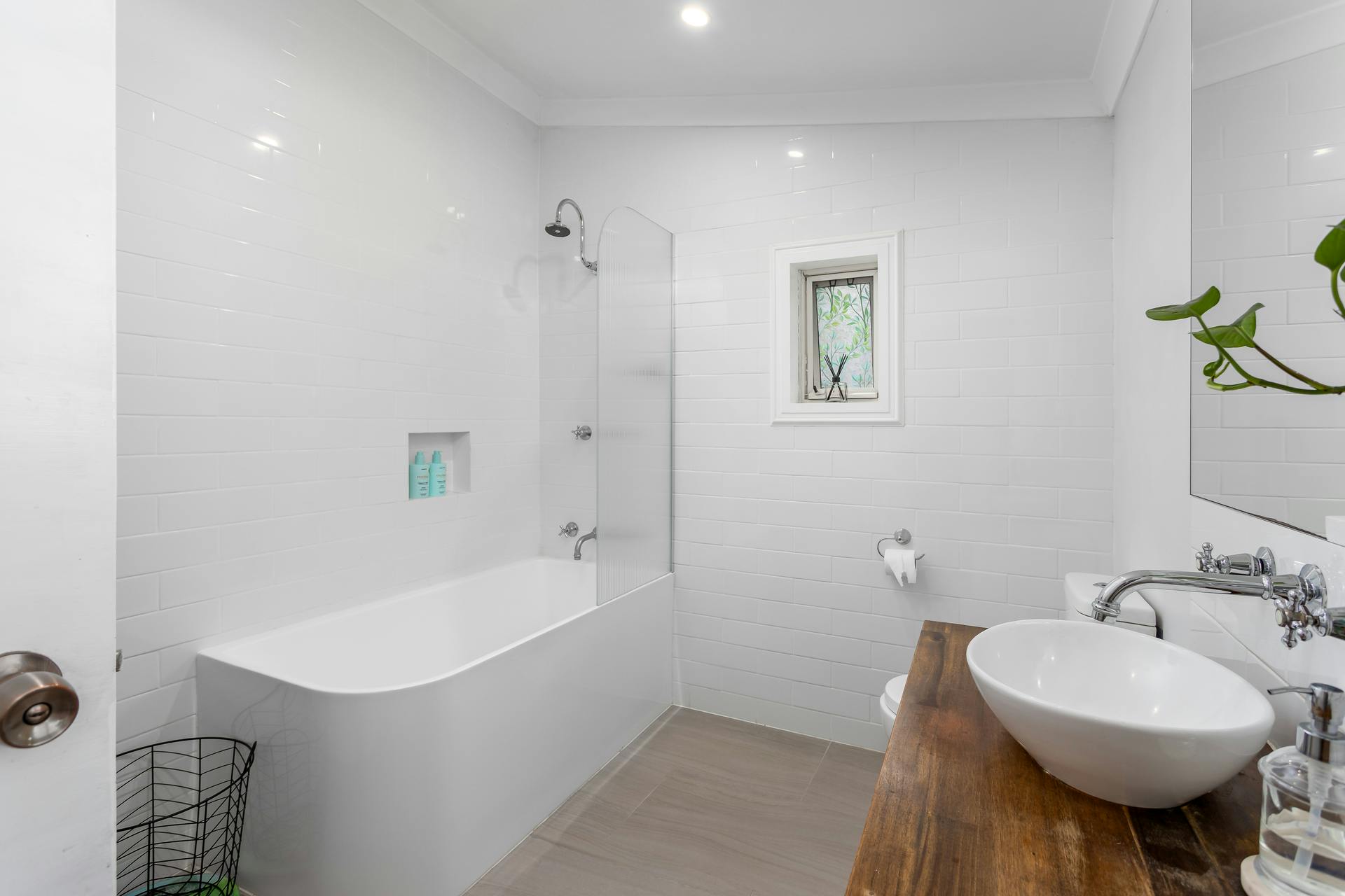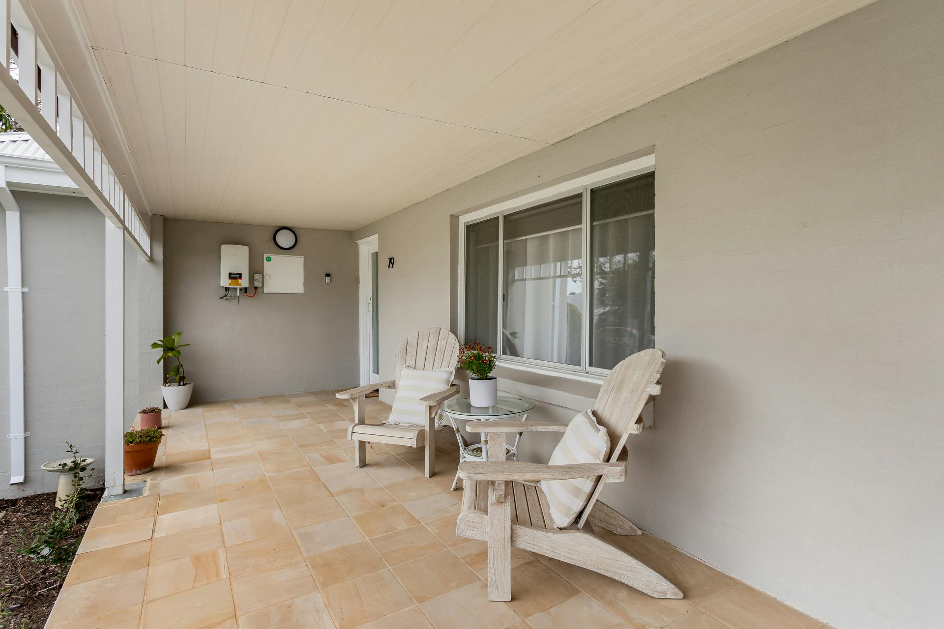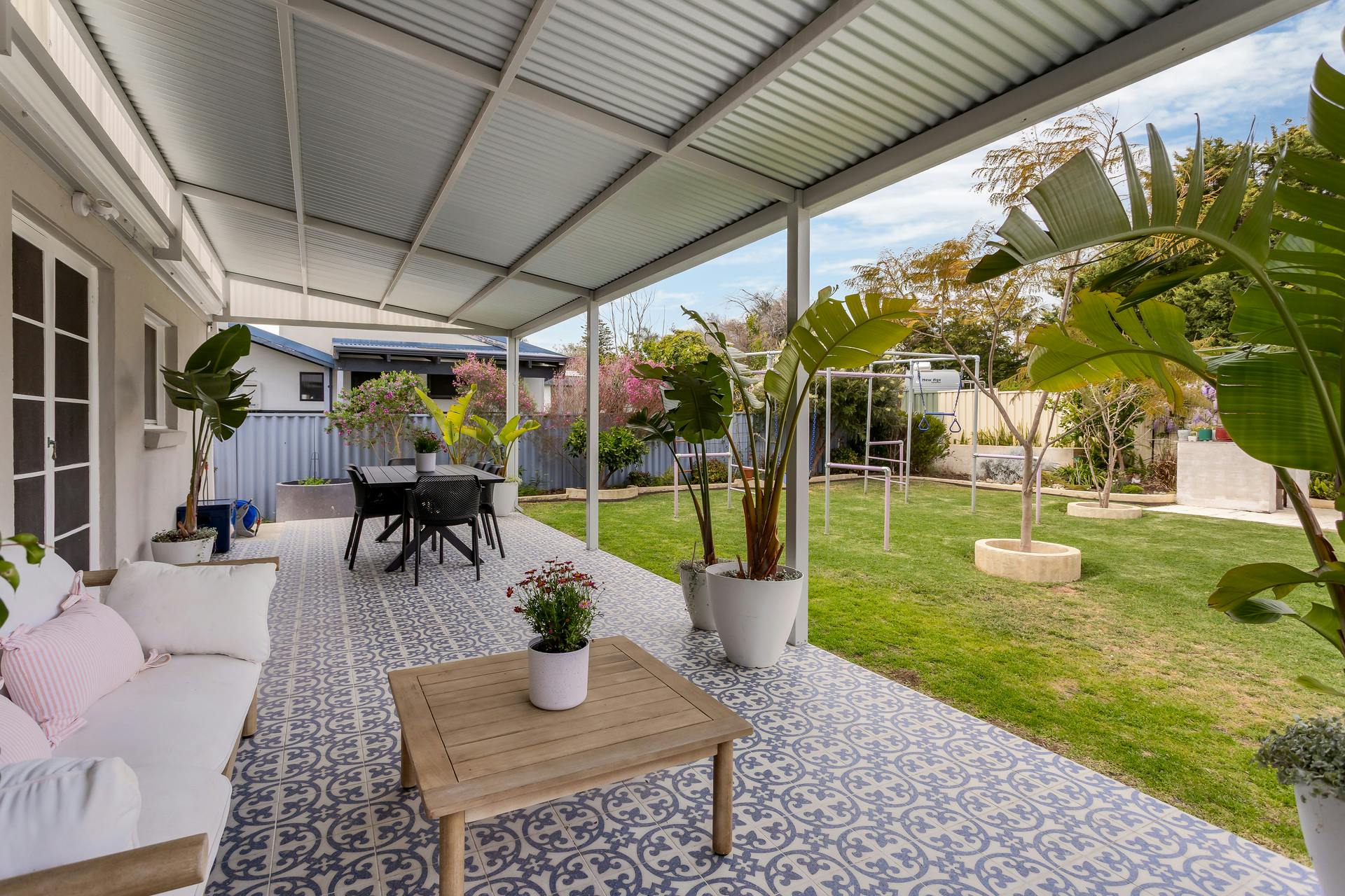 The alfresco at the rear again, with those lovely trendy tiles, is the perfect stage for entertaining with friends while you watch over the children playing in this perfect-sized private backyard.