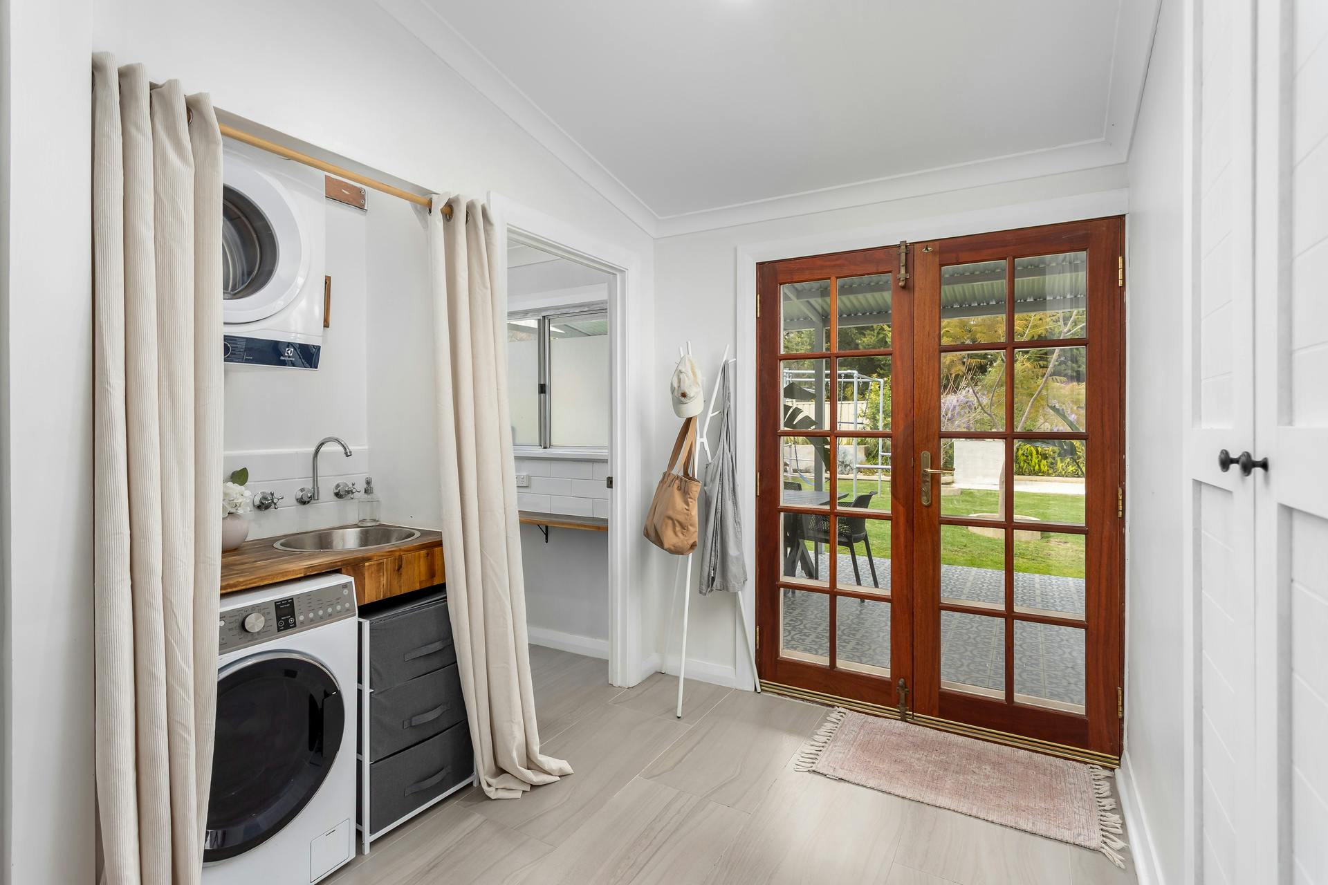 As you walk past your laundry, in a cupboard, plenty of room for your washer, with the dryer staying as it is vented out through the roof, so no fluff to take care of.